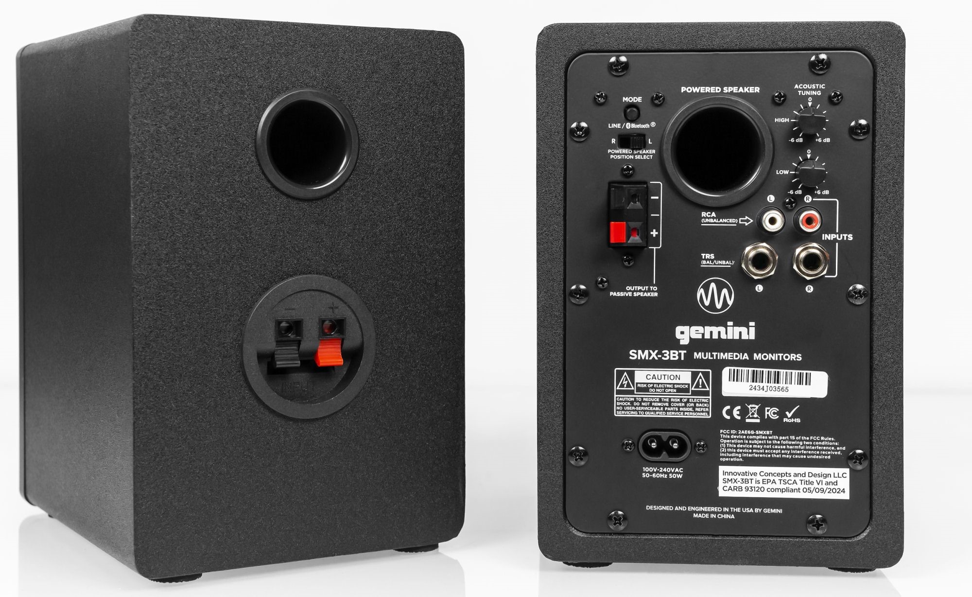 SMX-3BT обеспечивает максимальную выходную мощность 100 Вт через 3,5-дюймовый низкочастотный динамик и 0,75-дюймовый высокочастотный динамик, тогда как модель SMX-5BT предлагает 200 Вт мощности благодаря 5-дюймовой НЧ-секции и 1-дюймовому твитеру.